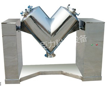 產品介紹: V型混料機是國際上較為通用粉末,顆粒狀物料混合機.它具有結構簡單,容易操作,維護清洗方便,速度快,混合效果佳等特點.廣泛采用于:磁性材料,粉末冶金,制藥,化工,食品,電子,陶瓷等行業,是一種理想的混合設備. 工作原理: 本設備吸取國外同類產品的優點進行設計,利用混料機二圓柱筒長度不相等,行成不對稱,當混料機轉動時物料從分解到組合,從組合到分解, 由于物料平面不同,也有橫向力,又推動物料進行橫向交流,每轉動一圈橫向力約使25%的物料從一個桶流向另一個桶,這樣物料橫向徑向混和,分解組合相互進 行,使物料達到非常均勻的混合效果。 特點:沒有機械擠壓和強烈磨損,能保持物料顆粒完整. 桶體內外拋光,均設計成圓滑過渡,無死角,可避免物料交叉污染,出料口配用蝶閥,下料方便. 本機還可根據用戶需求加裝強制攪拌裝置、物料加濕系統、氣體保護裝置。技術參數: